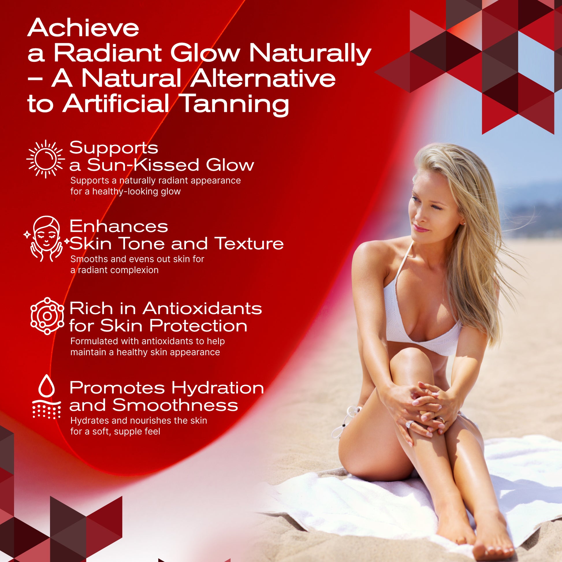 - Sunless Glow from Within: MuseBeam Tanning Gummies for Women deliver a natural-looking, sun-kissed glow without direct sunlight. Powered by Beta Carotene, Astaxanthin, Lycopene, and L-Tyrosine, these oral tanning gummies support melanin production and promote an even tan. Whether for a vacation or everyday radiance, they help maintain a beautiful tan while supporting skin tone and texture and overall skin health from within.